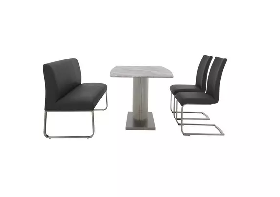 Compact Earth Dining Table And 2 Backrest Benches Furniture Village from i1.adis.ws That is how i felt when i saw the very first photo of erica's living and dining room. Merax rustic vintage style distressed dining table bench with wooden seat panel metal backrest and metal legs, distressed black merax. Chances are you'll found another dining room benches with backs higher design ideas. Usually everyone has their own favorite spot. ● as for materials and colors, we recommend sticking to a ● specifically, whether you look for dining benches with back or without it, scout for models that combine wooden legs and an upholstered seat Table with faux marble top in polyurethane finish. Dining benches are a good alternative to the usual dining chairs. Zinus 3 piece juliet espresso dining table with bench set.
